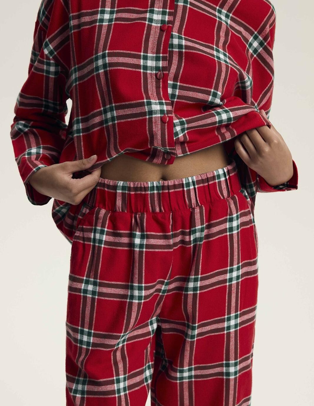 Dámské pyžamo - vysoce kvalitní bavlněný flanel - kostkovaný potisk - halenka s dlouhým rukávem - s límečkem, zapínání na knoflíky - dlouhé nohavice s kapsami - guma v pase v tunýlku Složení: 100% bavlna