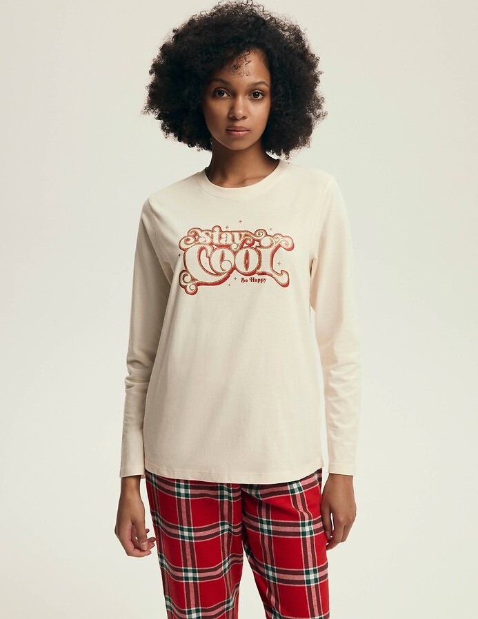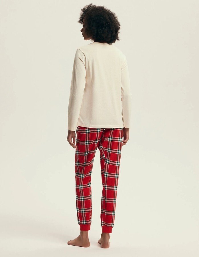 Dámské pyžamo - kvalitní měkká bavlna - tričko s dlouhým rukávem - barevný, lesklý nápis na přední straně - sladěné dlouhé flanelové kalhoty s kostkovaným vzorem - žebrované manžety - baleno v plastovém sáčku Složení: 100% bavlna