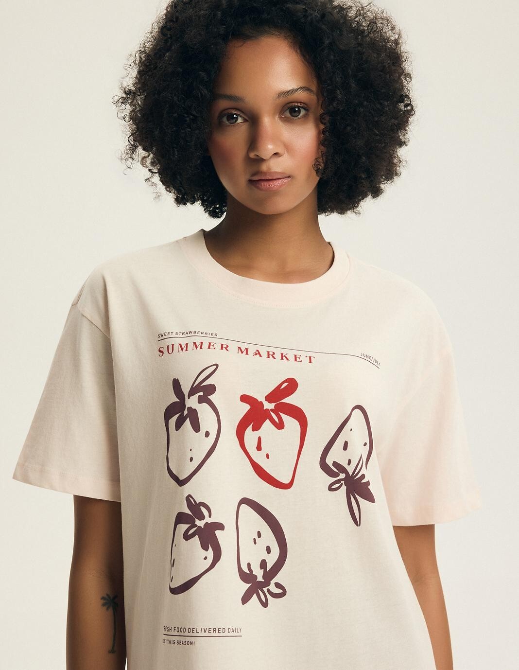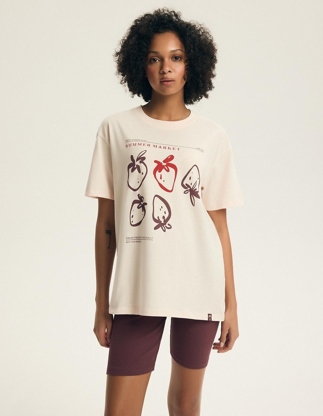 Dámské letní pyžamo - vysoce kvalitní bavlna - tričko s krátkým rukávem - ozdobný jahodový vzor vpředu - kulatý výstřih - legíny součástí balení - jemně žebrovaný úplet - široký elastický pas - baleno v plastovém sáčku Složení: tričko 100% bavlna; kraťasy 95% bavlna, 5% elastan