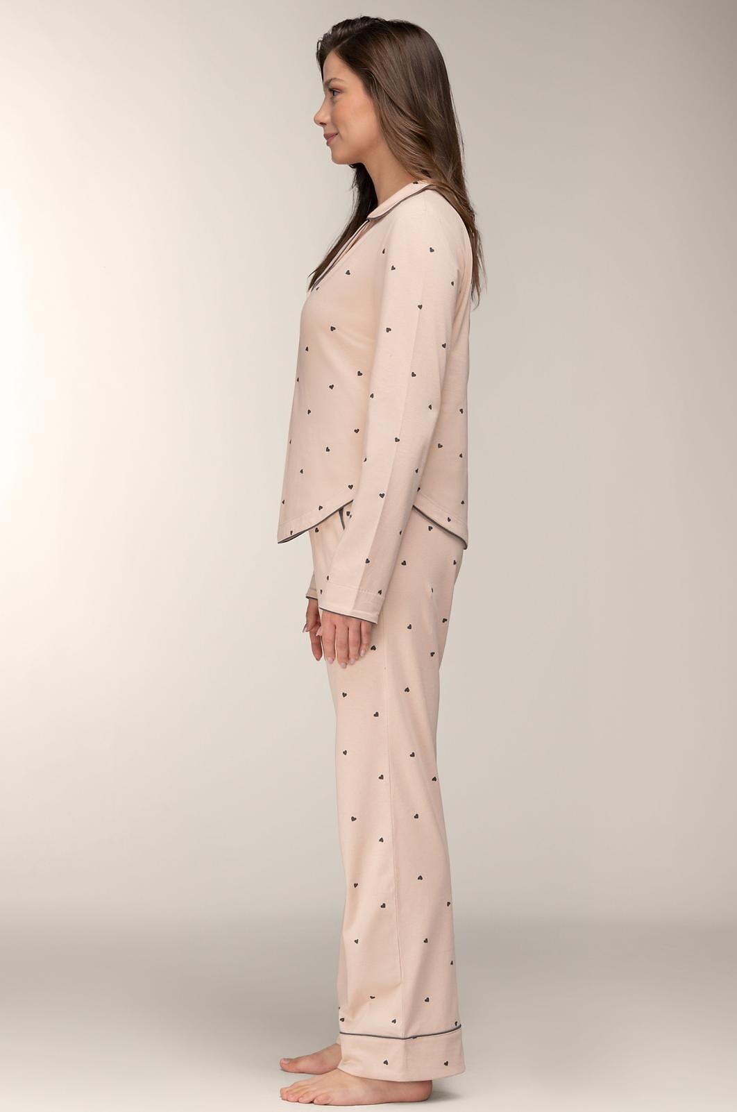 Dámské pyžamo - vysoce kvalitní bavlna - vzor srdce - mikina s dlouhým rukávem - s límečkem, zapínání na knoflíky - lemované kontrastním lemováním - dlouhé kalhoty s kapsami - rovné, volné nohavice - pohodlný elastický pas - baleno v plastovém sáčku Složení: 100% bavlna