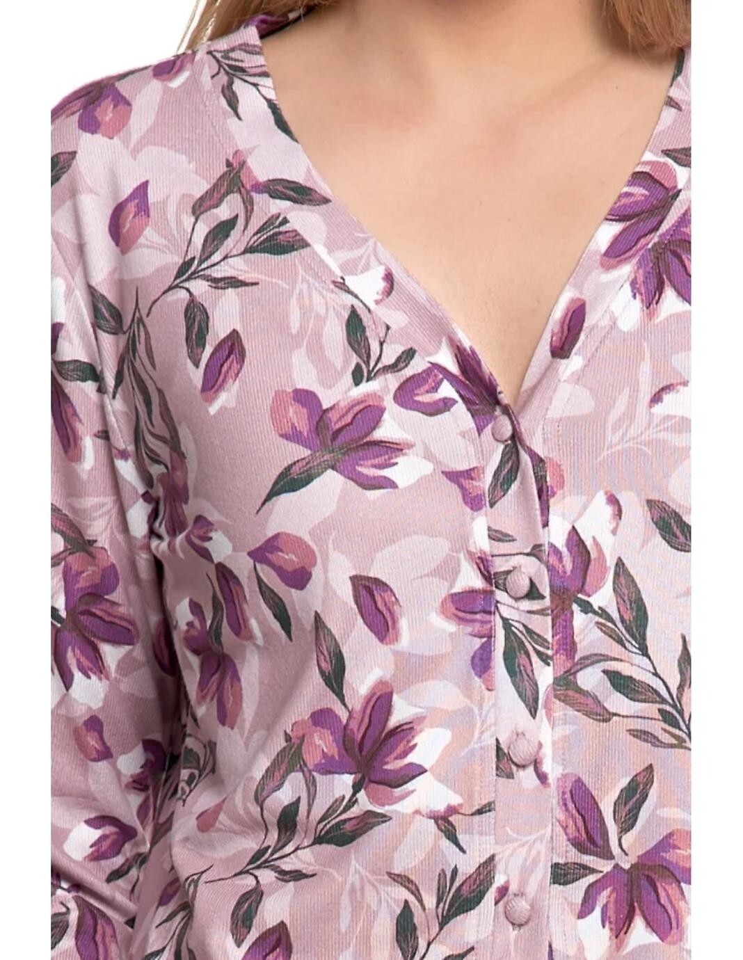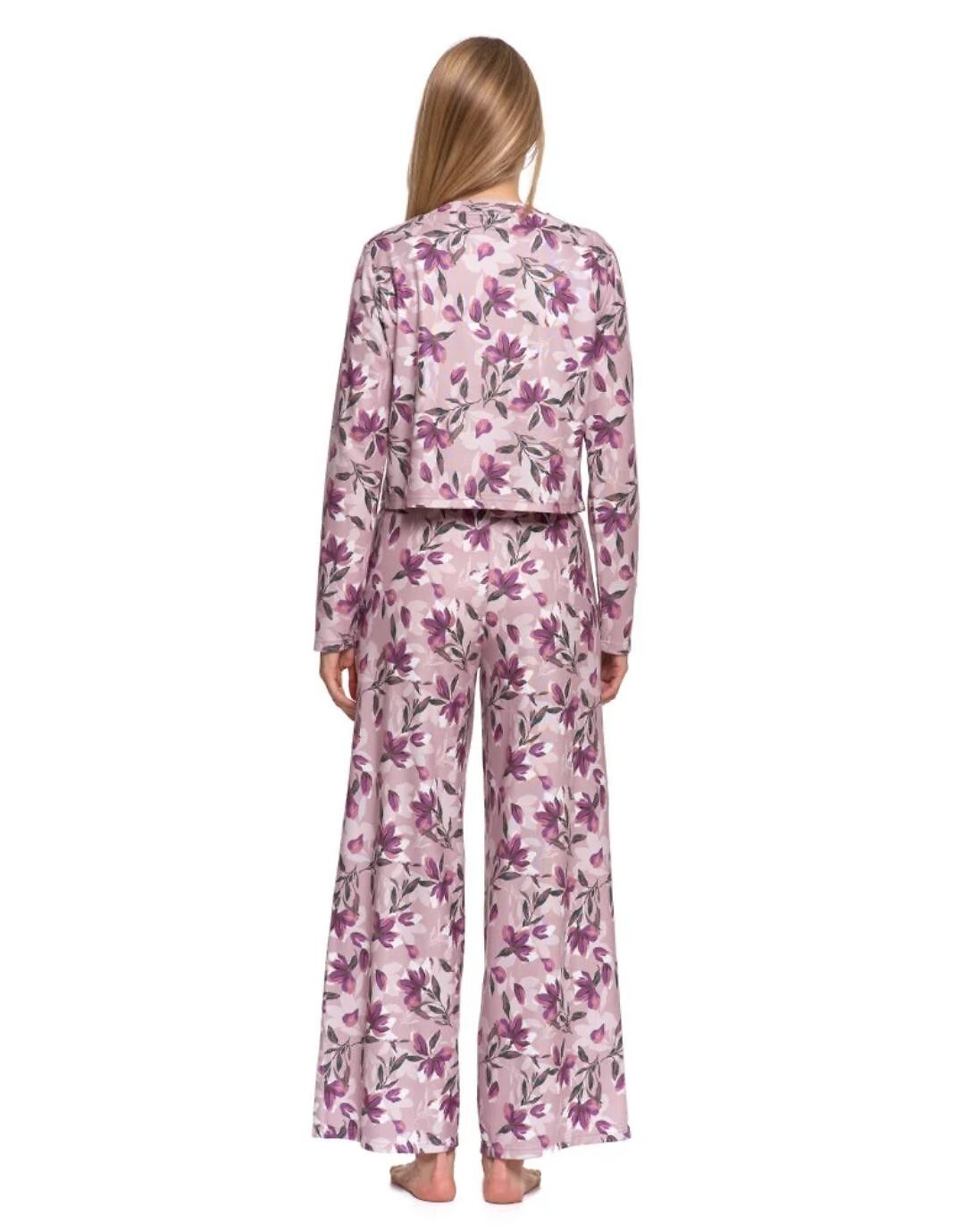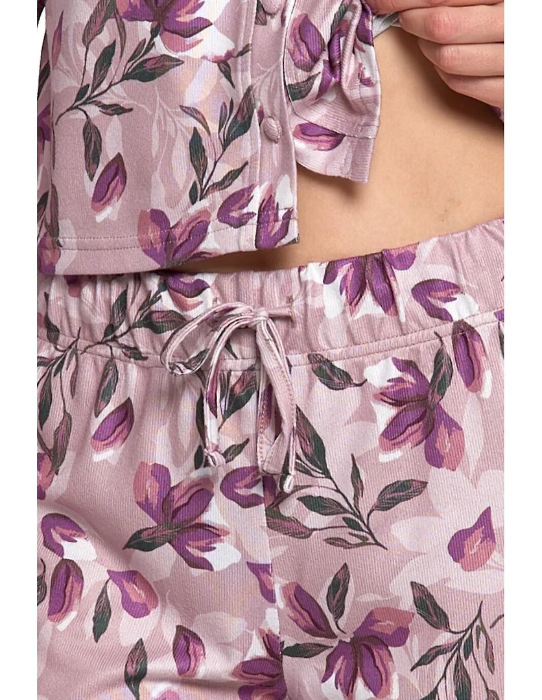 Dámské pyžamo - měkký, jemně pruhovaný úplet - poutavý květinový potisk - krátké tričko s dlouhým rukávem - výstřih do "V" - zapínání na knoflíky - dlouhé, volné kalhoty se širokými nohavicemi - pohodlný elastický pas a stahovací šňůrka pro nastavení obvodu Složení: 95% polyester, 5% elastan