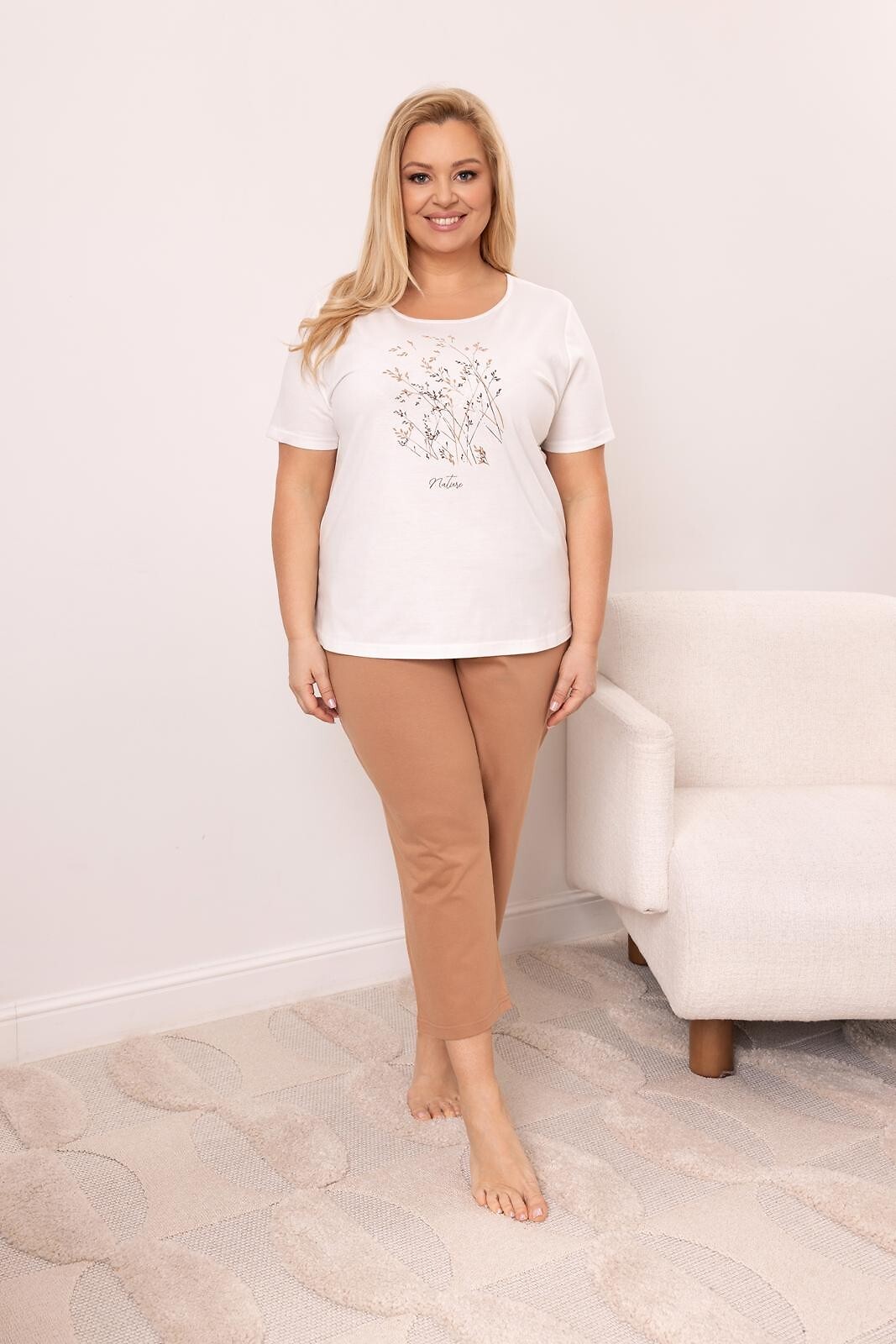 Dámské bavlněné pyžamo - tričko s krátkým rukávem - kulatý výstřih - ozdobný potisk na přední straně - kalhoty 7/8 délka - elastický pas s bavlněným lemem Složení: 100% bavlna