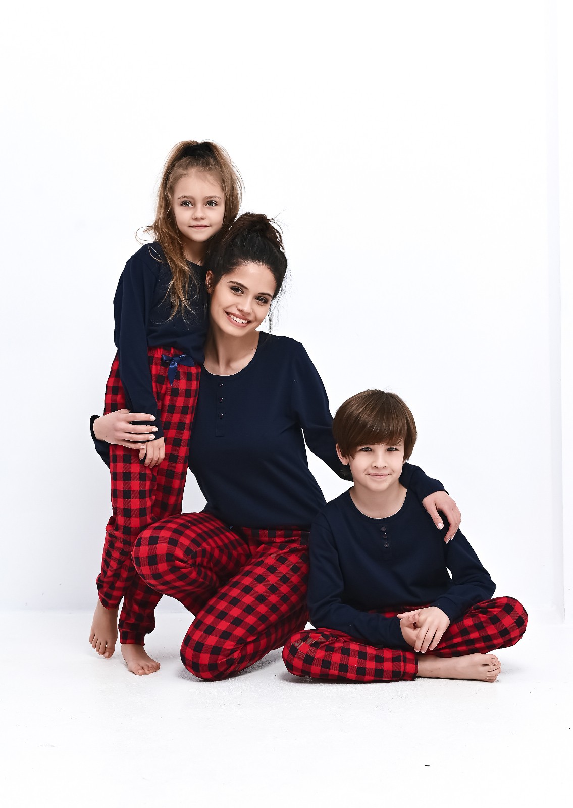 Dámské pyžamo - jednoduché tričko s dlouhým rukávem - žebrované manžety - výstřih zdobený knoflíky - dlouhé kostkované kalhoty - elastický pas a saténová mašle Složení: 100% bavlna