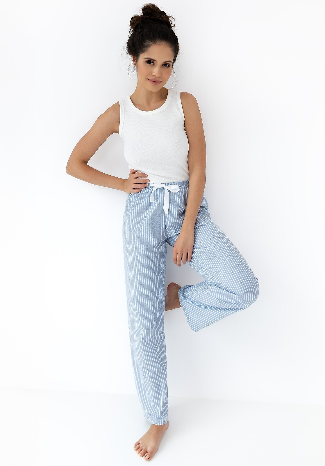 Dámské pyžamo - vysoce kvalitní bavlna - tričko s jemným proužkem - široká ramínka - dlouhé, rovné nohavice - tenká tkanina se svislými pruhy - elastický pas a zavazovací stuha Složení: tričko 97% bavlna, 3% elastan; kalhoty 100% bavlna