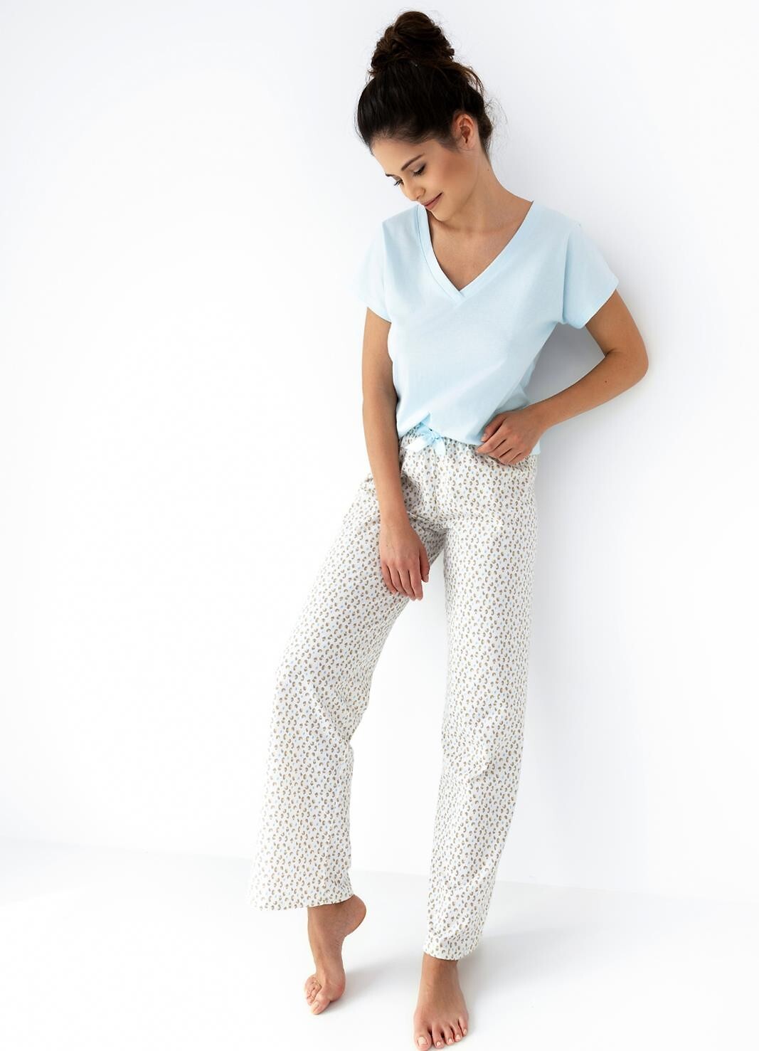 Dámské pyžamo - vysoce kvalitní bavlna - tričko s krátkým rukávem - výstřih do V - dlouhé kalhoty, zvířecí potisk - elastický pas a saténová mašle Složení: 100% bavlna