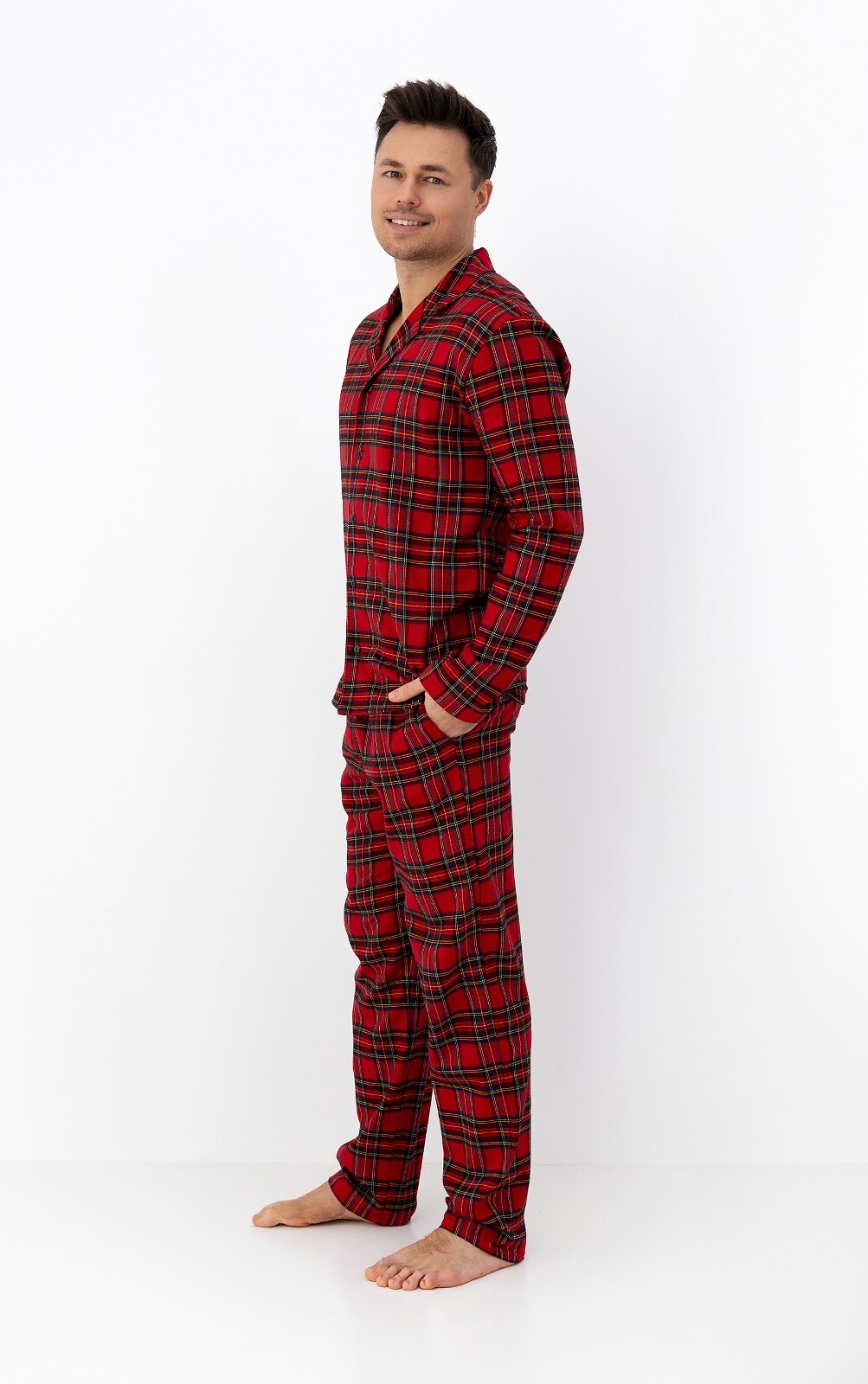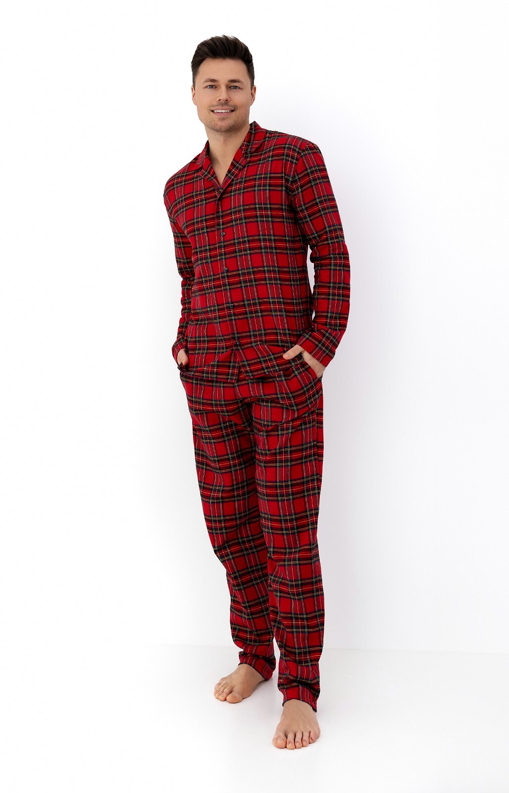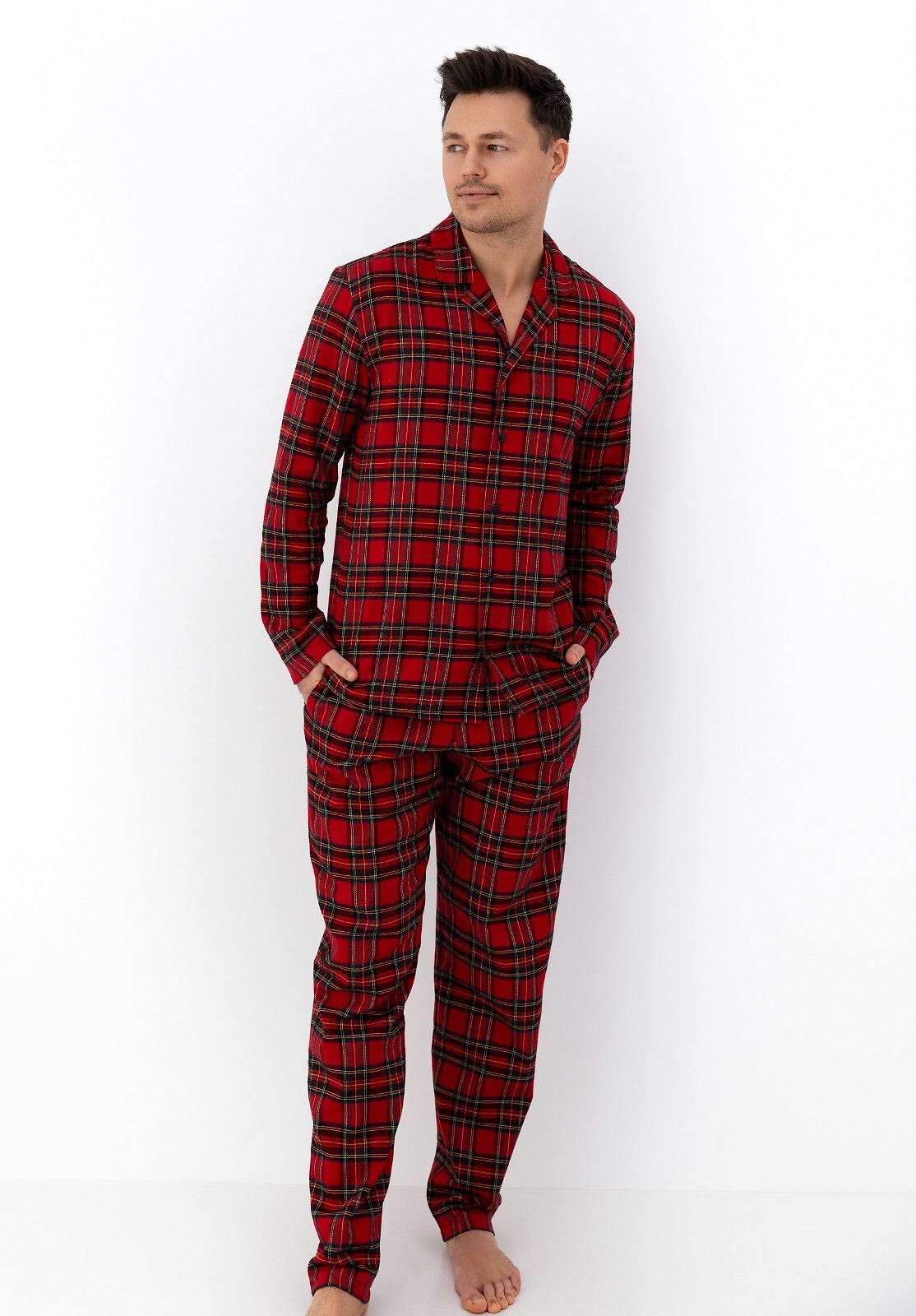 Pánské pyžamo - vysoce kvalitní bavlněný flanel - kostkovaný potisk - mikina s dlouhým rukávem - s límečkem, zapínání na knoflíky - dlouhé nohavice - elastický pas lemovaný bavlnou s nastavitelnou šňůrkou Složení: 100% bavlna