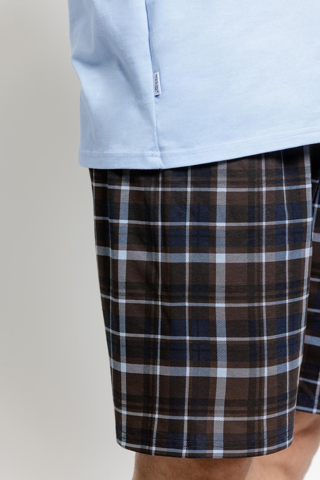 Pánské bavlněné pyžamo - tričko s krátkým rukávem - půlkulatý výstřih - malý potisk na hrudi - krátké kostkované kraťasy - elastický pas s bavlněným lemem Složení: 100% bavlna