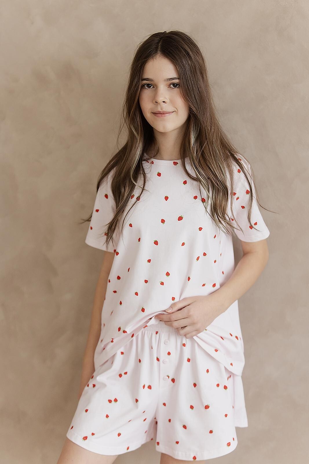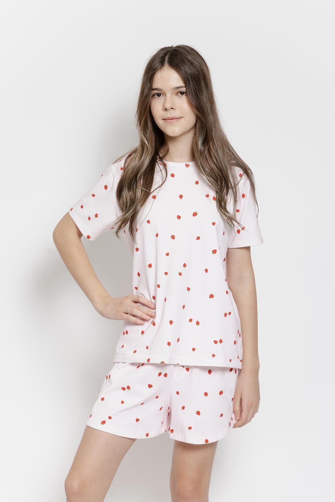 Dívčí pyžamo - vysoce kvalitní bavlna - zdobené barevným potiskem - tričko s krátkým rukávem - sladěné kraťasy - přední část zdobená knoflíky - baleno v plastovém sáčku Složení: 100% bavlna