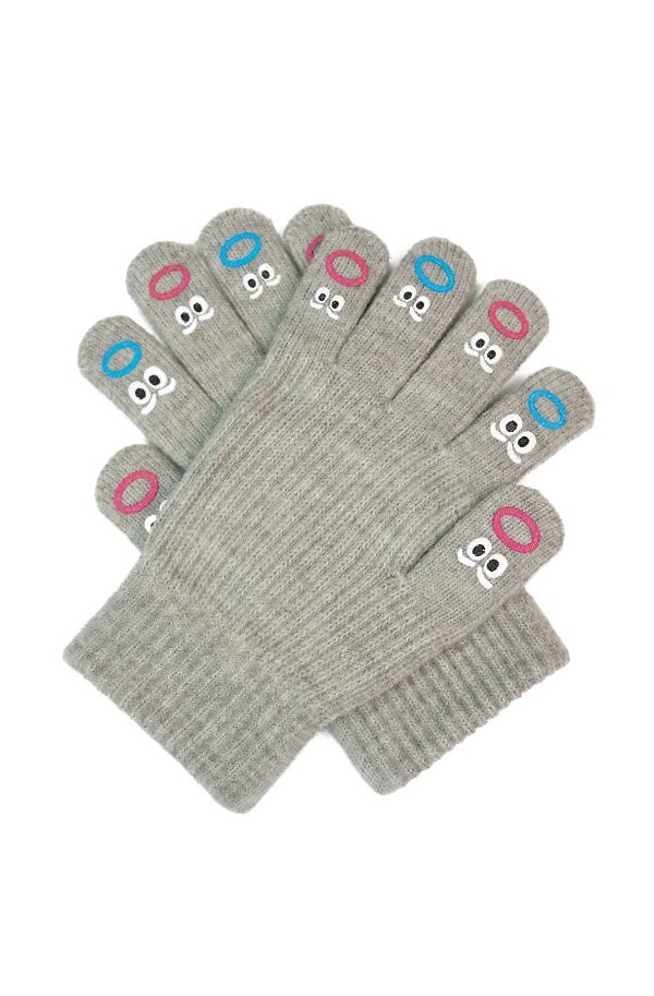 Zimní rukavice s grafickým, zábavným motivem - stylový a praktický doplněk pro chladné dny - vyrobené z pružného, pružného materiálu - perfektně padnou do ruky a poskytují pohodlí a teplo - originální potisk jim dodává charakter a univerzální střih je činí vhodnými pro sportovní i ležérní styl - malé otvory na 2 prstech umožňují použití dotykové obrazovky Složení: 100% akryl
