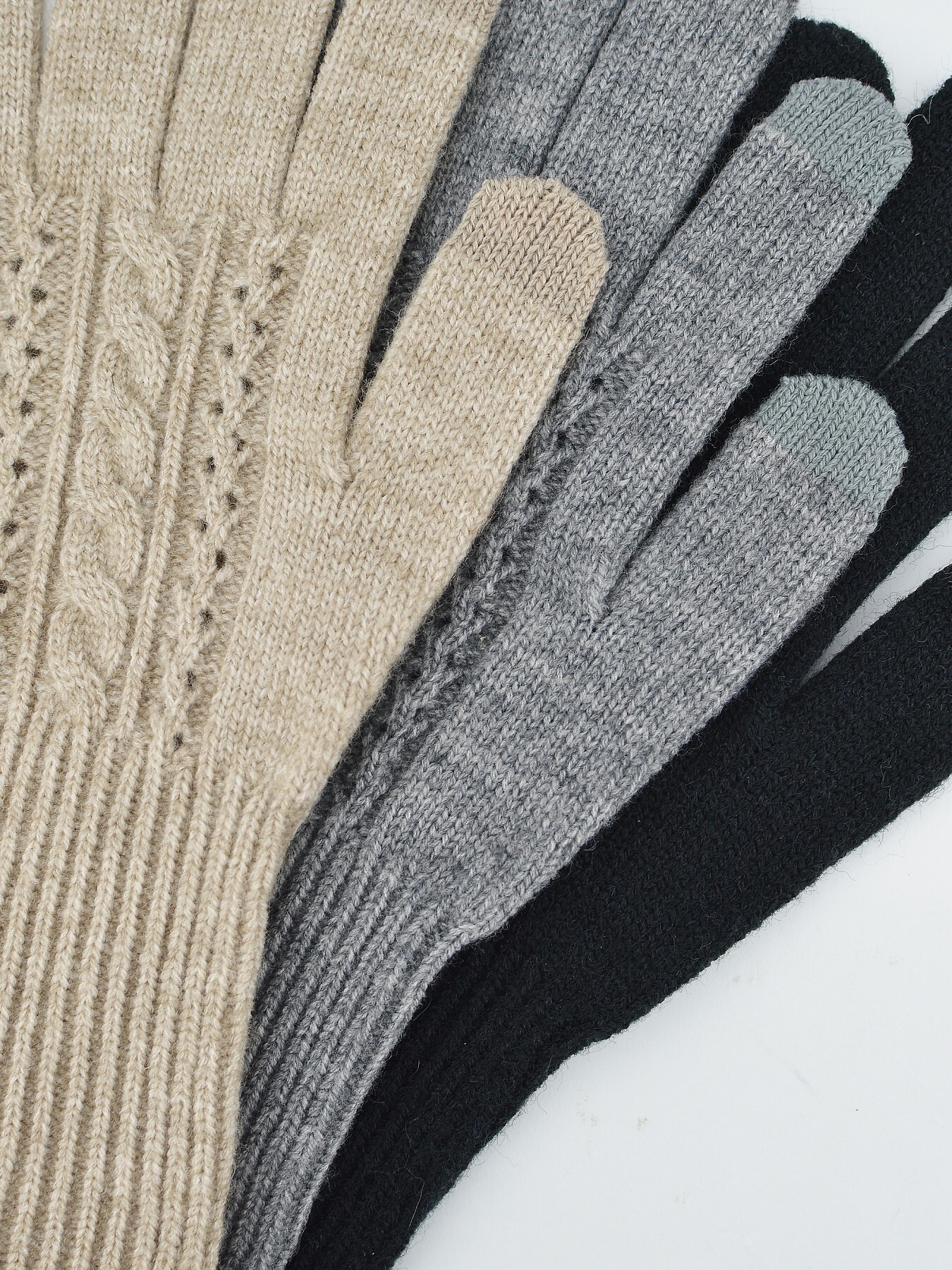 Dámské rukavice - pětiprsté - měkký úplet zdobený vzorem - dostupné barvy: šedá, béžová, černá - vybrány náhodně Složení: 45% akryl, 30% polyamid, 25% elastan