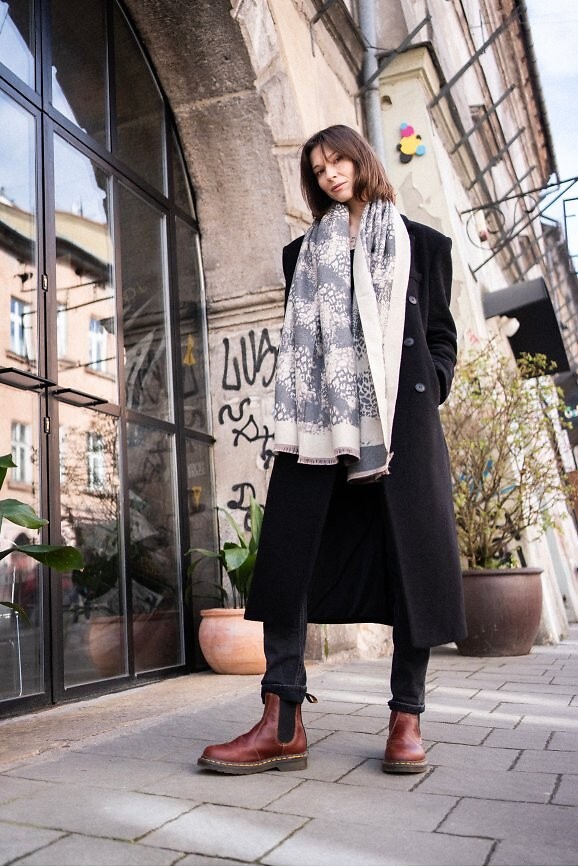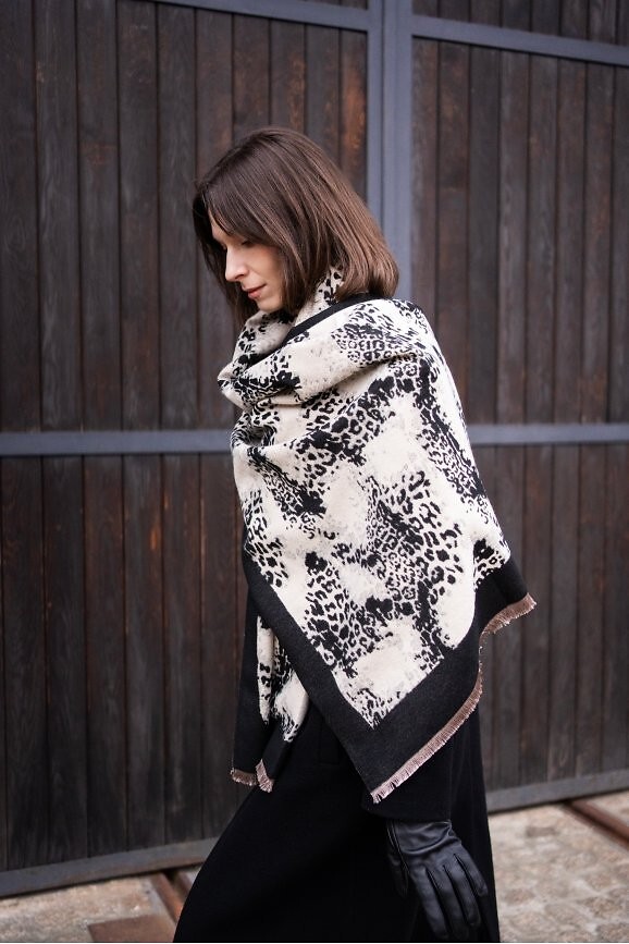 Dámský šátek - vyrobený z měkkého, k pokožce příjemného, přírodního materiálu - jemný zvířecí motiv - decentní úprava v podobě malých třásní - skvělý doplněk pro přechodné období i na zimu. Složení: 80% viskóza, 20% bavlna.