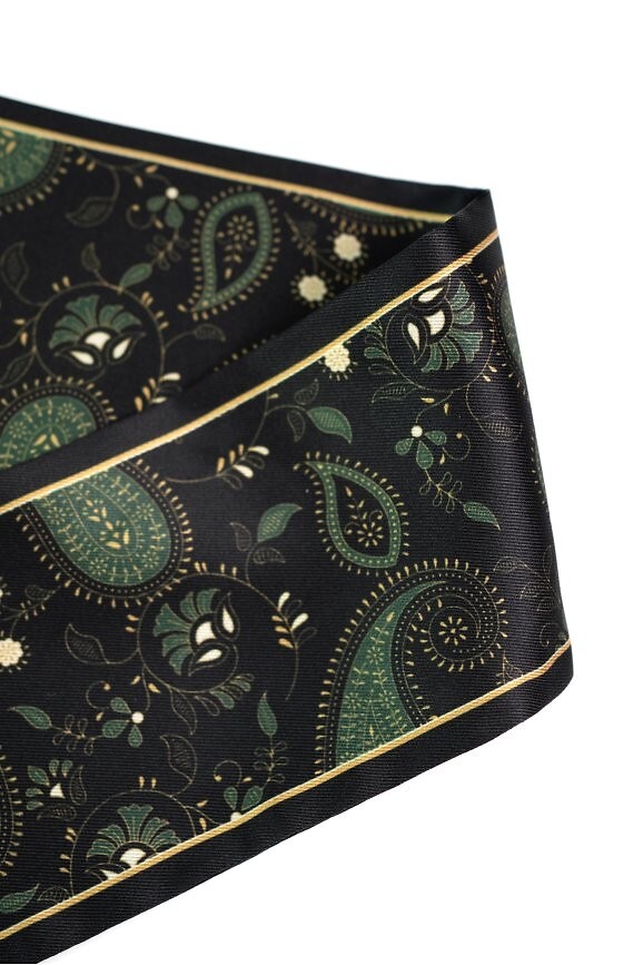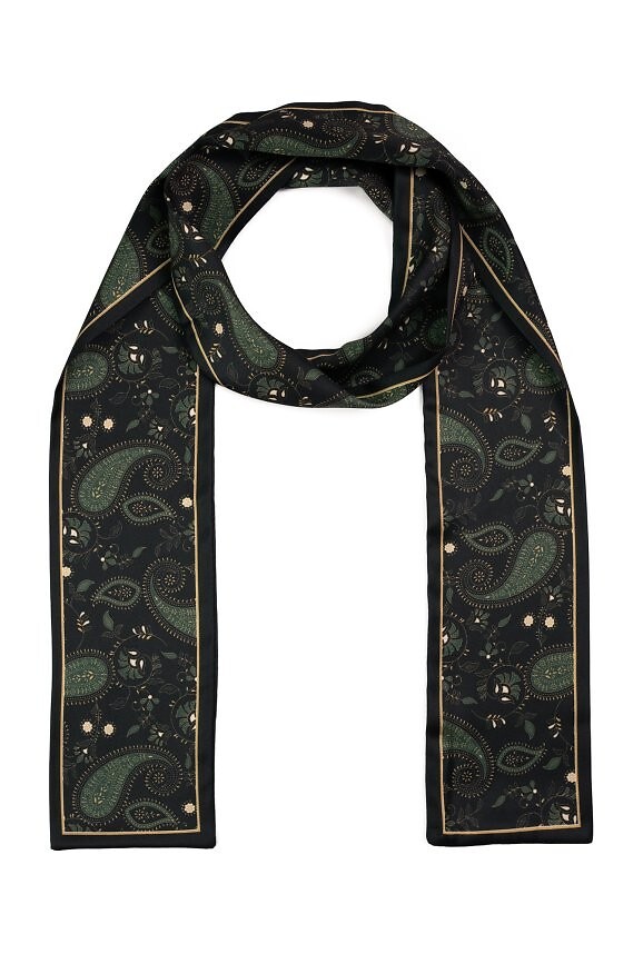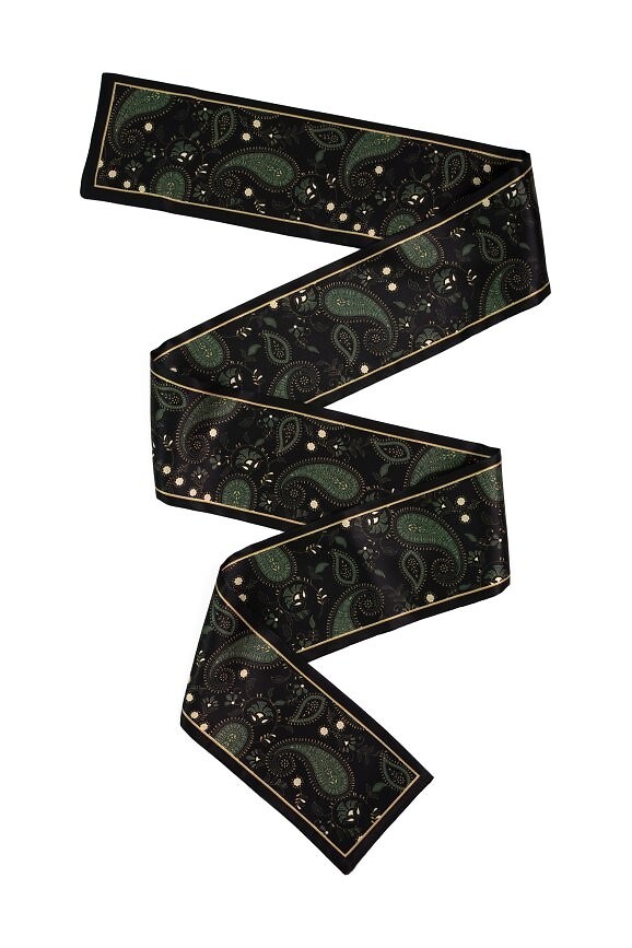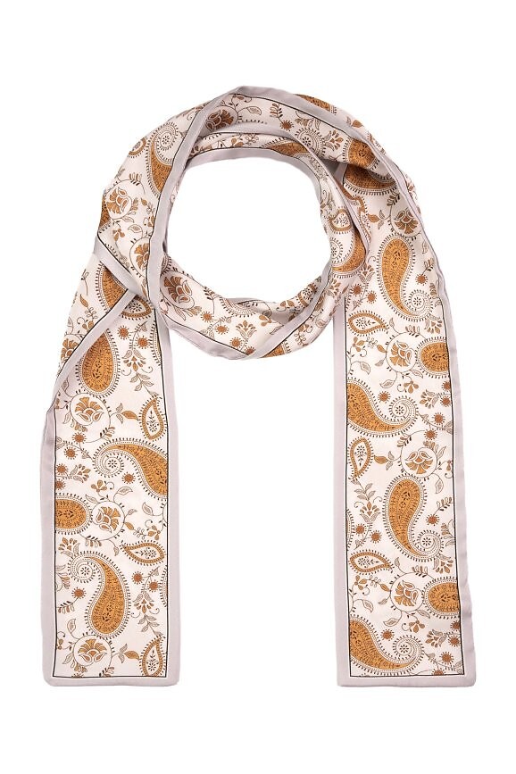 Jemný saténový dámský šátek v jemných barvách. Decentní doplněk, který podtrhne charakter každého outfitu. Orientální paisley vzor dodává eleganci. Měkký a příjemný materiál umožňuje pohodlné nošení na hlavě nebo uvázání kolem krku. Složení: 100% polyester.