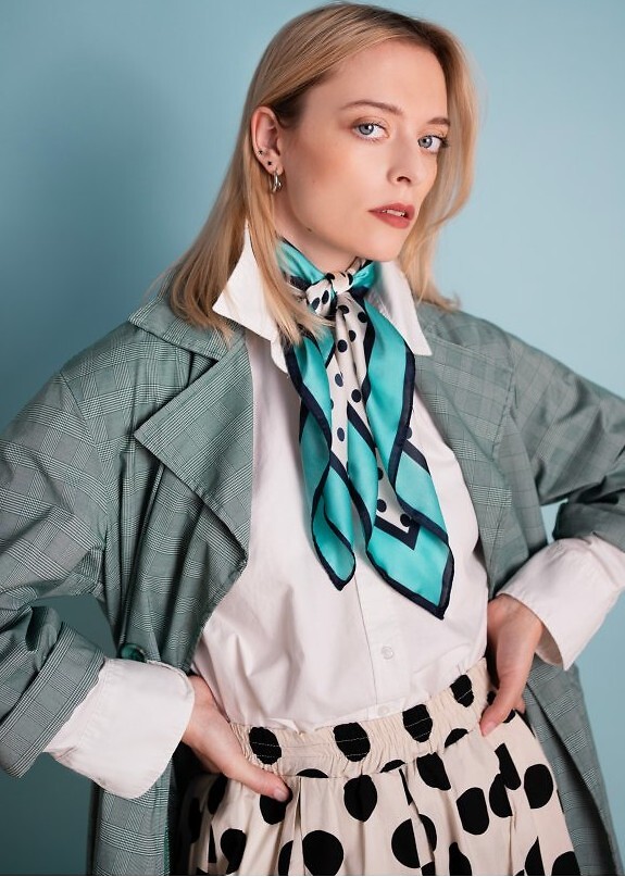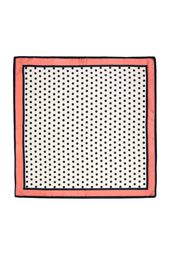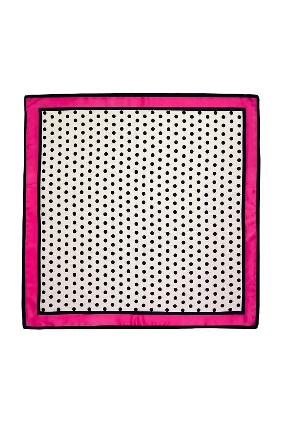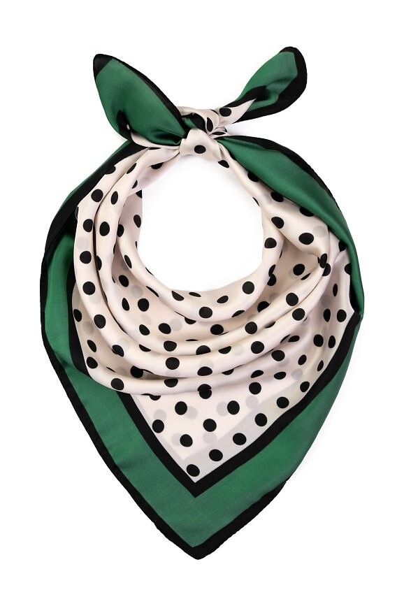 Čtvercový šátek s puntíky - všestranný doplněk, který lze nosit mnoha způsoby - kolem krku, na hlavě, s kabelkou nebo i uvázat kolem pasu - hladká, lehce lesklá látka zvýrazňuje vzor a dodává stylu decentní, elegantní akcent - detail, který dokáže proměnit každodenní vzhled a dodat charakter ležérním i formálnějším outfitům - velikost 70x70cm Složení: 100% polyester