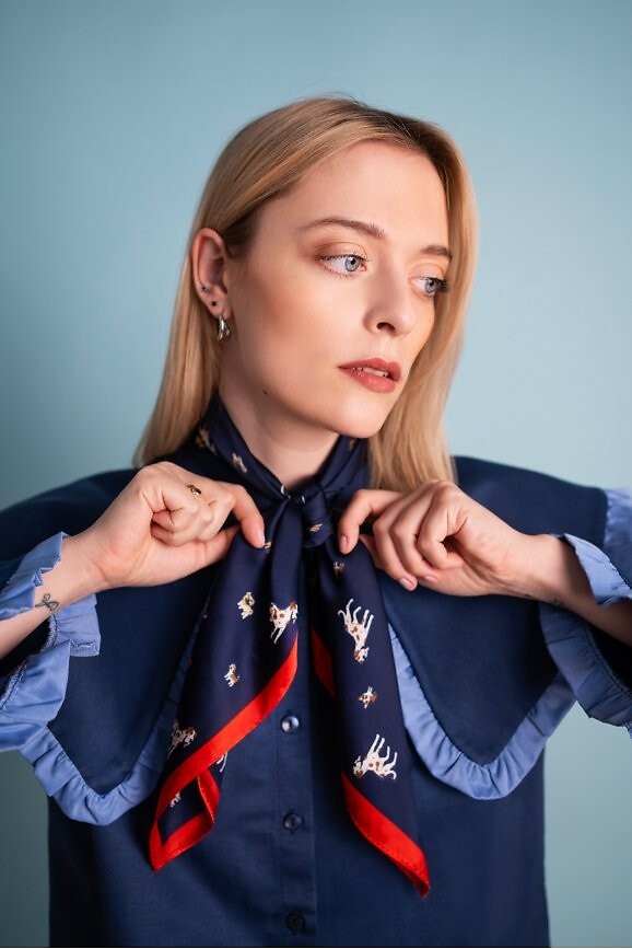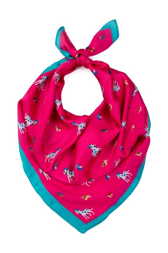 Saténový šátek se vzorem psa - všestranný doplněk - lze jej nosit na hlavě, kolem krku, na tašce nebo i uvázat kolem pasu - lehce lesklá látka zvýrazňuje vzor a dodává stylu elegantní nádech - rozměr 70x70 cm Složení: 100% polyester