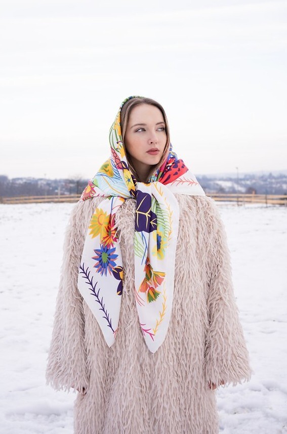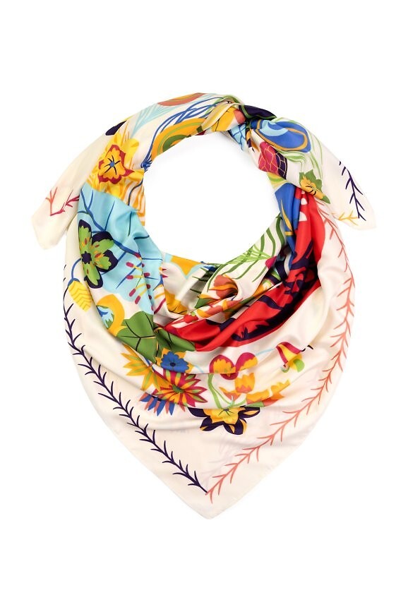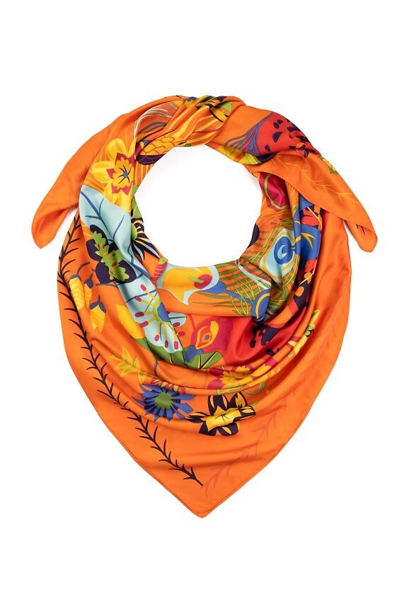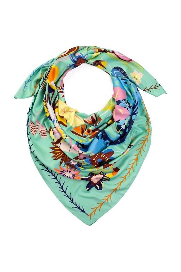 Velký čtvercový šátek s motivem pavího oka - velká velikost umožňuje mnoho způsobů nošení - lze uvázat na hlavu, kolem krku nebo použít jako pareo v letních dnech - intenzivní barvy dodávají stylu charakter - šířka a délka 130x130 cm Složení: 100% polyester