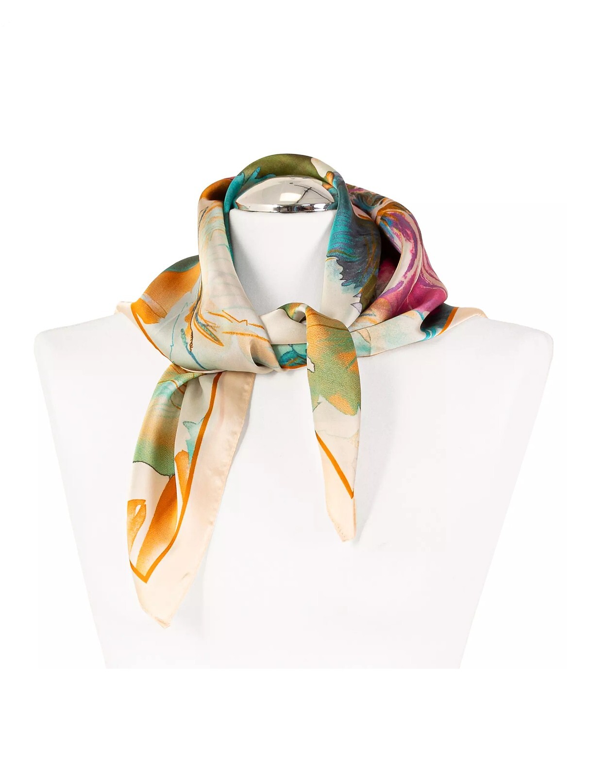 Dámský šátek - výrazný květinový vzor - ideální k různým způsobům zavazování - hodí se jako doplněk na krk, ozdoba na kabelku nebo šátek na hlavu. Složení: 100% polyester.