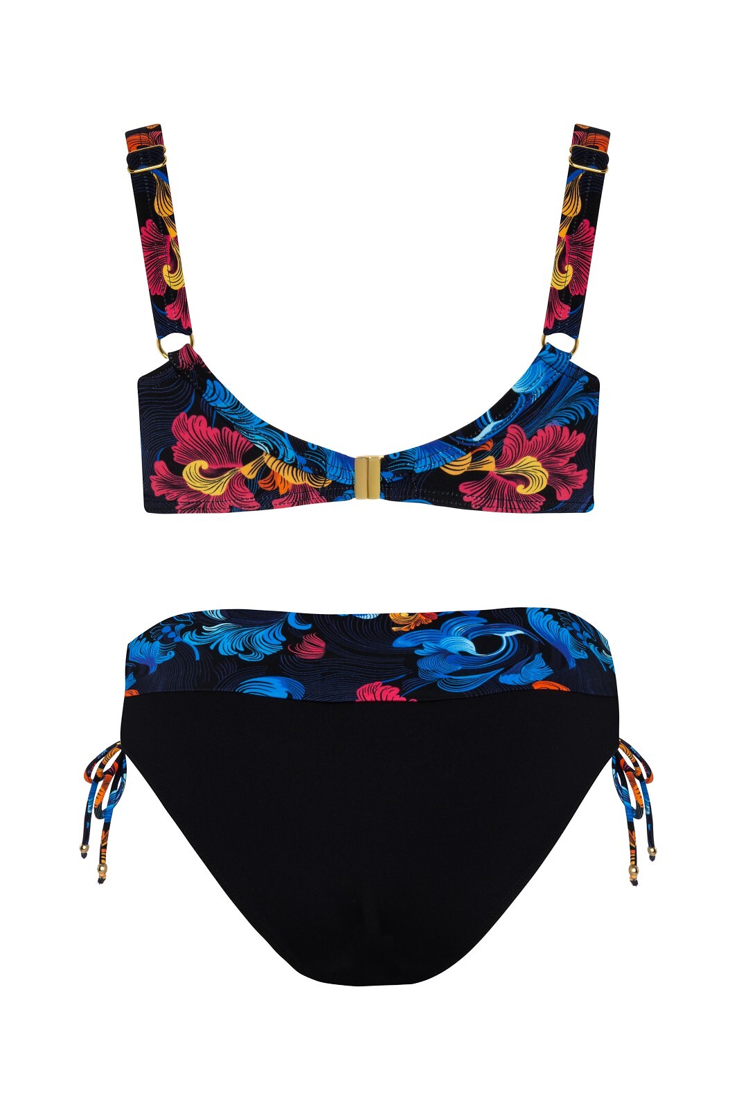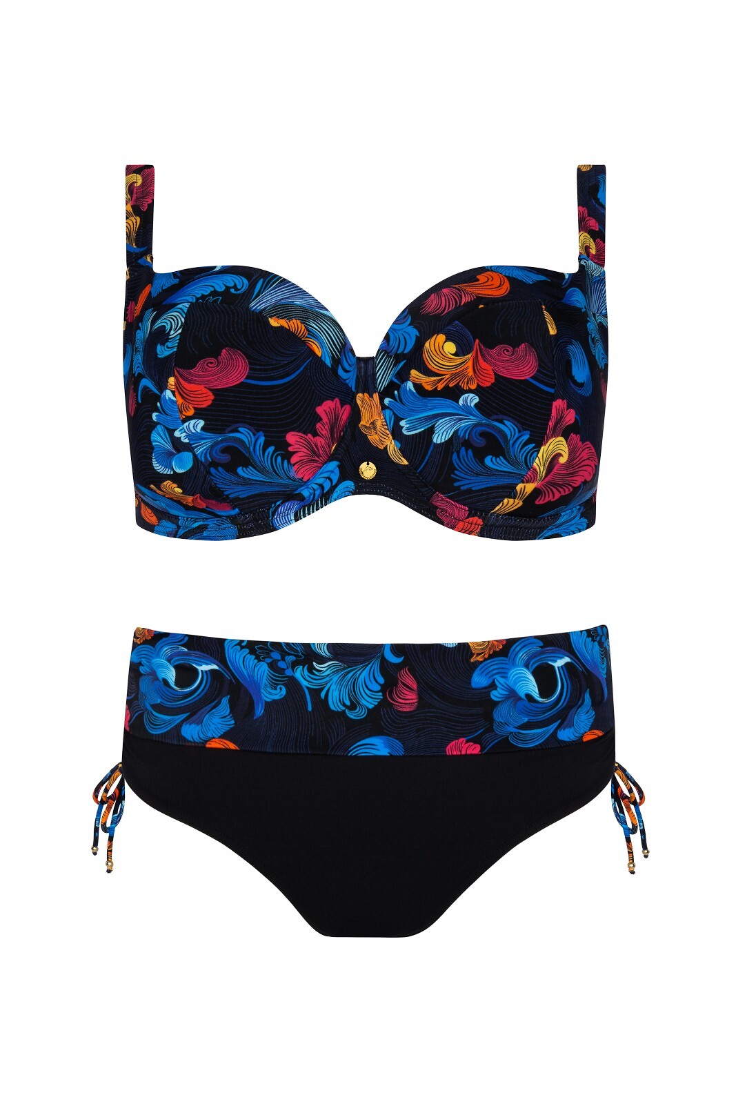 Podprsenka s plnými košíčky - zapínání vzadu - nastavitelná ramínka - sladěné kalhotky s bočními stahovacími šňůrkami Složení: 85% polyamid, 15% elastan