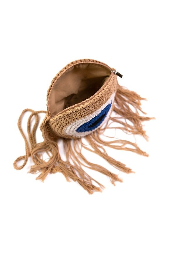 Malá, tkaná dámská kabelka v boho stylu - vyrobená výhradně z přírodních materiálů - perfektní model na léto - její malá velikost a měkký tvar ji předurčují na procházky, výlety a prázdninové okružní jízdy městem - vnitřek je zakončen bavlněnou podšívkou - praktický doplněk pro ženy, které si cení ležérního stylu a funkčnosti. Složení: 100% bavlna