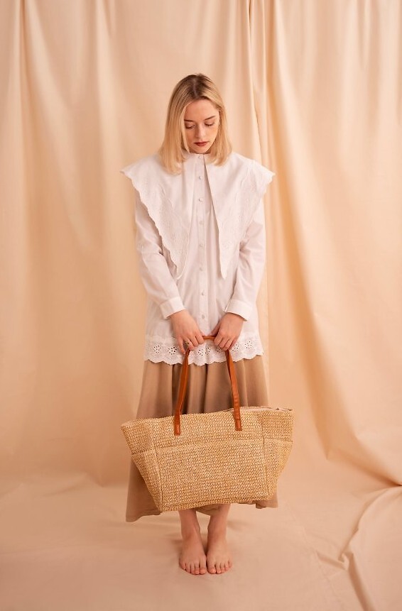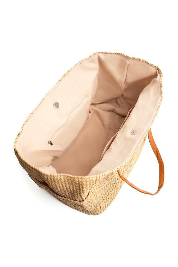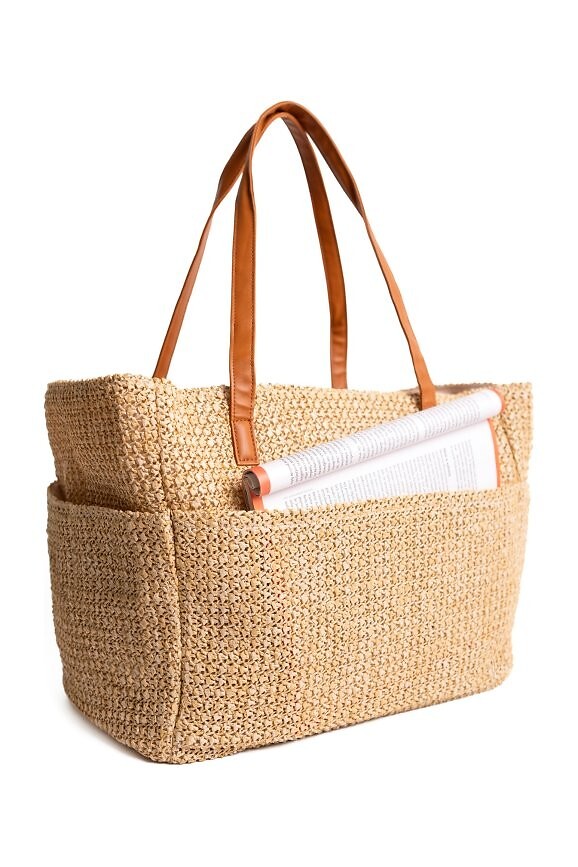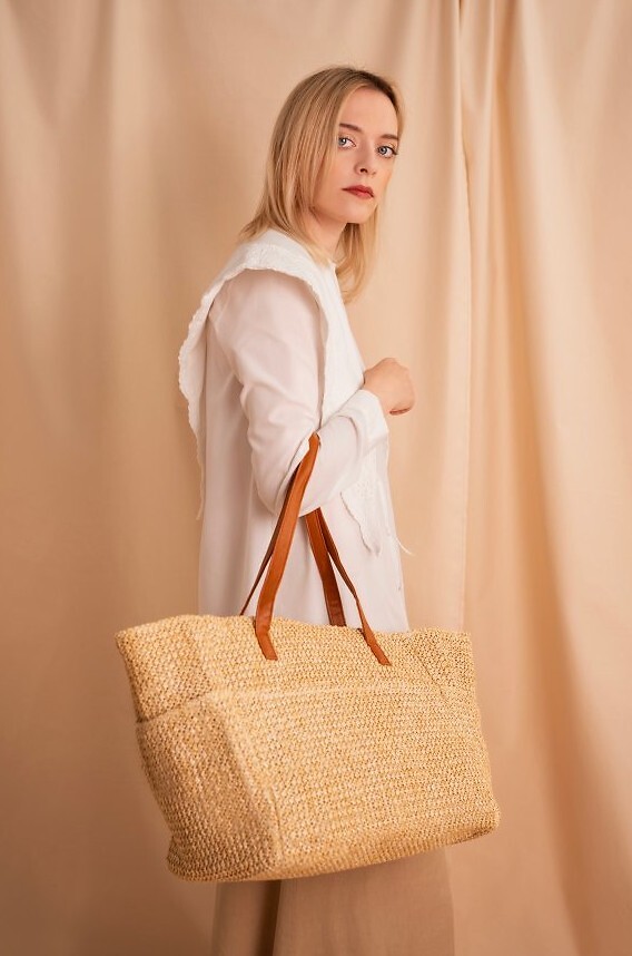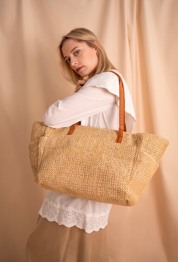 Velká tkaná letní taška - vyrobená z přírodních materiálů - model má povrchovou úpravu z eko kůže a bavlněnou podšívku - měkká konstrukce umožňuje pohodlné nošení na rameni - vejde se do formátu A4 - šířka 60 cm, výška 40 cm Složení: 100% papír