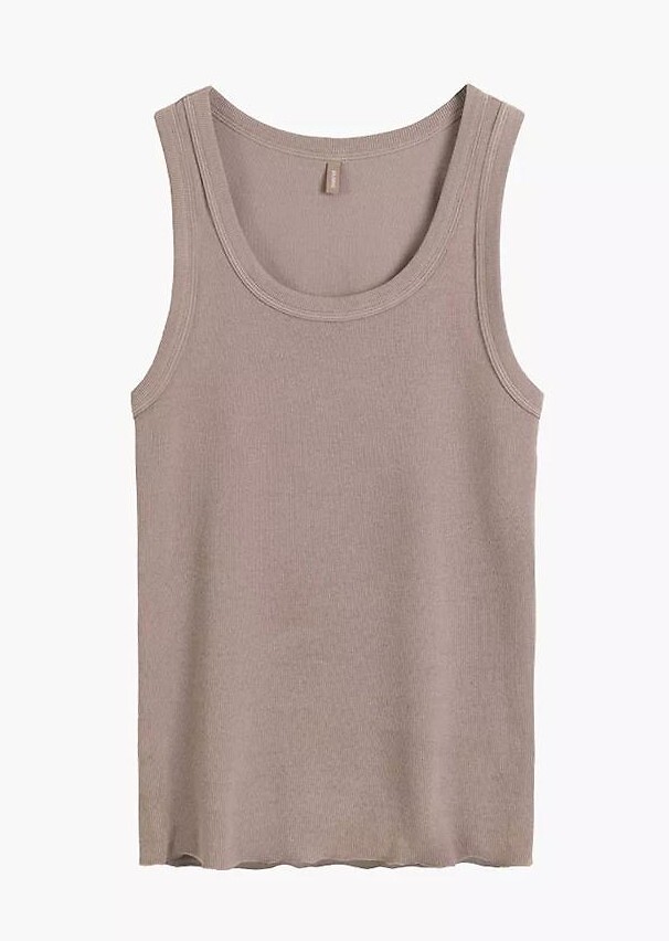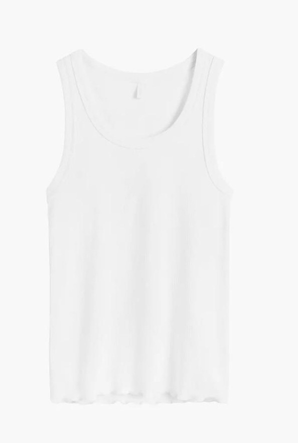 Dámské tričko - měkká, jemně žebrovaná tkanina - sportovní střih - široká ramínka - spodní část trička zakončená volánkovým lemem Složení: 95% bavlna, 5% elastan
