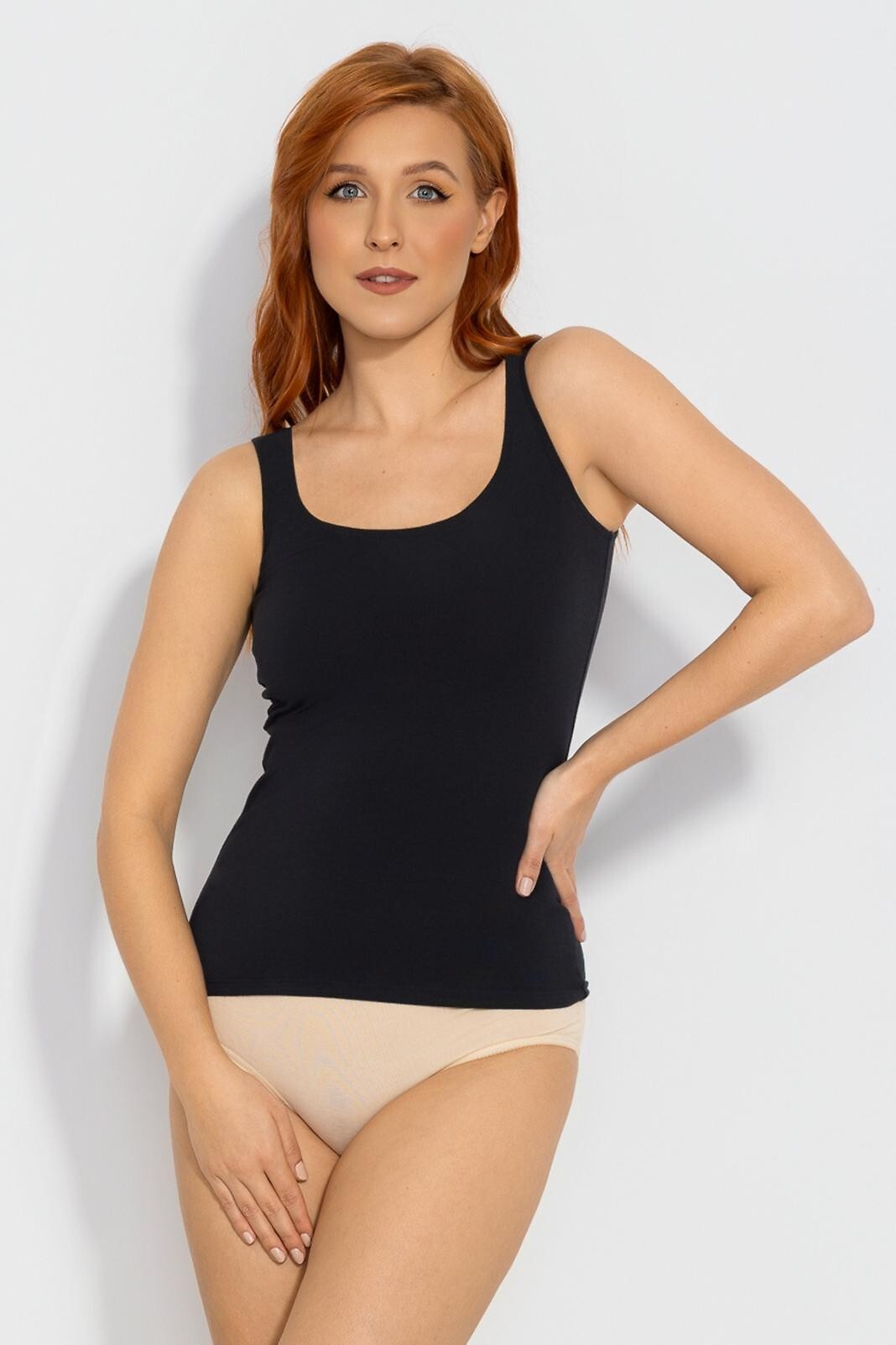 Klasické dámské tričko - vysoce kvalitní bavlna - široká ramínka - perfektně přiléhá k tělu - baleno v plastovém sáčku Složení: 95% bavlna, 5% elastan