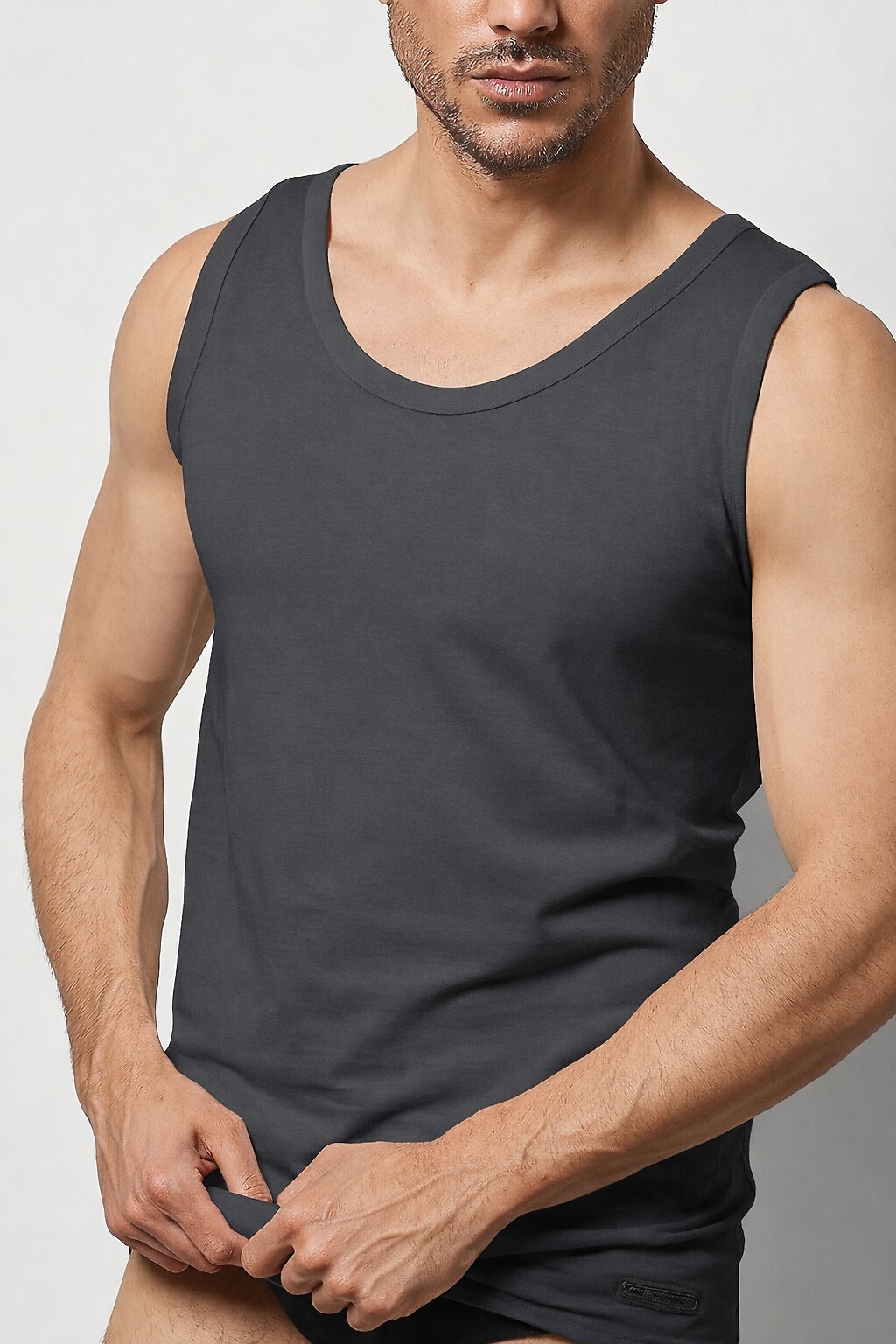 Klasické pánské tričko - z měkkého bavlněného úpletu - široká ramínka - půlkulatý výstřih - přiléhavý střih - drobný potisk s logem značky ve spodní části trička - baleno v plastovém sáčku Složení: barva grigio scuro 50% bavlna, 45% polyester, 5% elastan; ostatní barvy 995% bavlna, 5% elastan