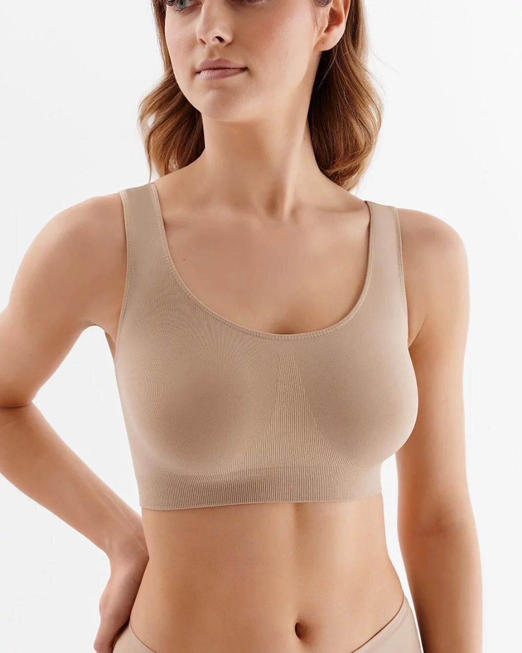 Dámský bezešvý top - vyrobený z hladkého a žebrovaného úpletu - široká ramínka - přiléhavě přiléhá k tělu, je neviditelný pod oblečením a neomezuje v pohybu - žádné prošívání zajišťuje pohodlí při nošení po celý den Složení: 91% polyamid, 9% elastan