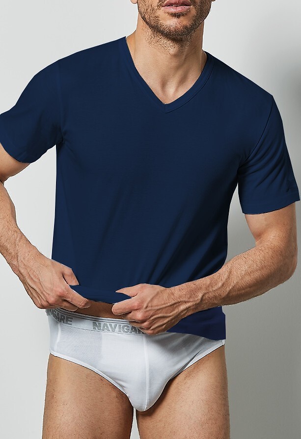 Pánské tričko - z měkkého bavlněného úpletu - krátké rukávy - výstřih do V - přiléhavý střih - drobný potisk s logem značky na rukávu Složení: 95% bavlna, 5% elastan