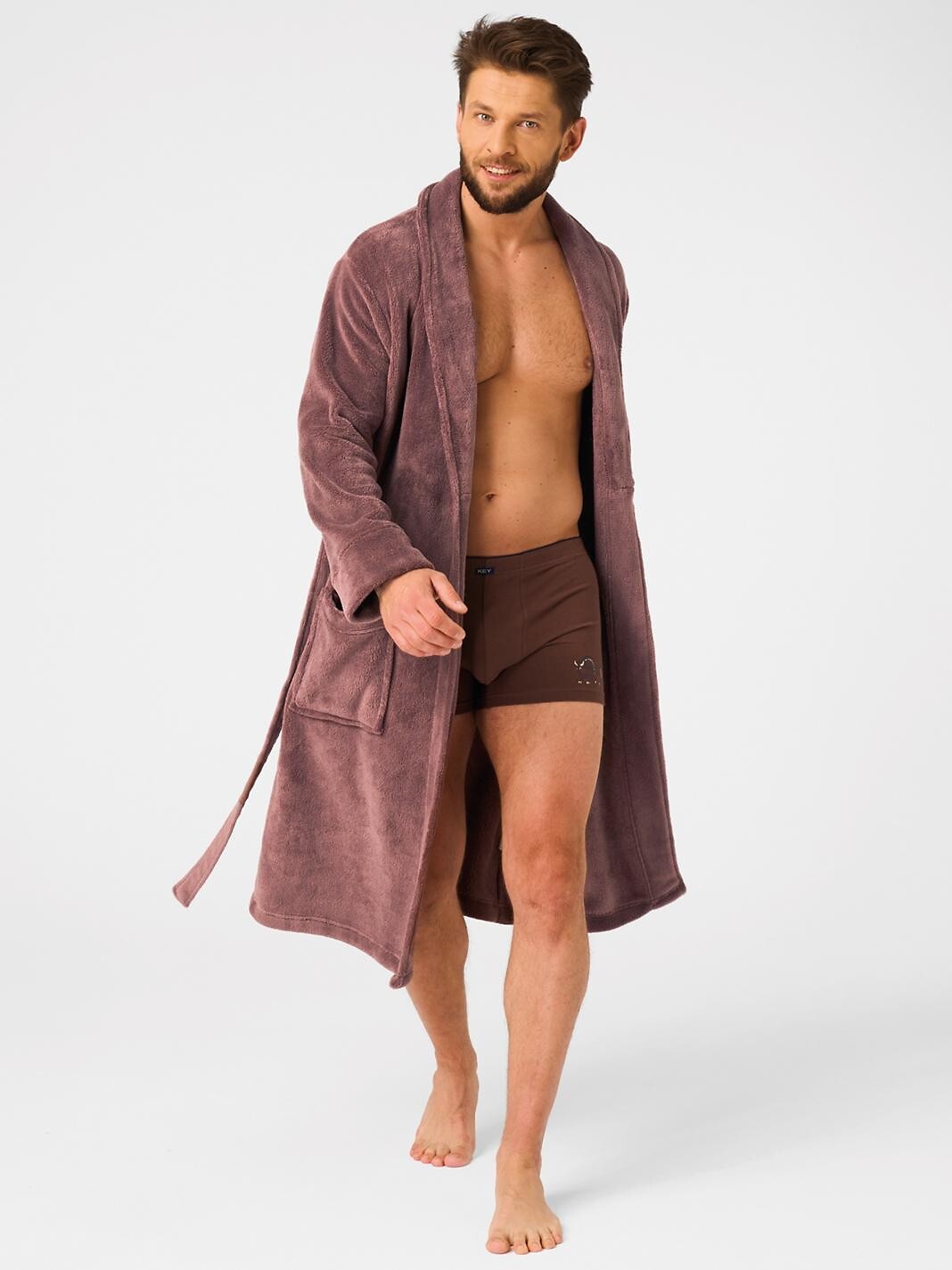 Pánský župan klasického střihu - teplý a velmi měkký na dotek - rovný střih, nakládané kapsy - zavazování v pase - délka ke kolenům Složení: 100% polyester