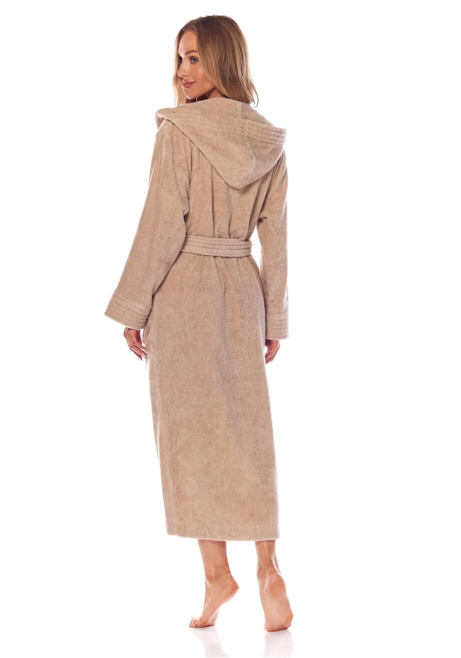 Dlouhý dámský župan - vyrobený z vysoce kvalitní bavlny, froté - s kapucí - zavazování v pase - kapsy na bocích Složení: 100% bavlna
