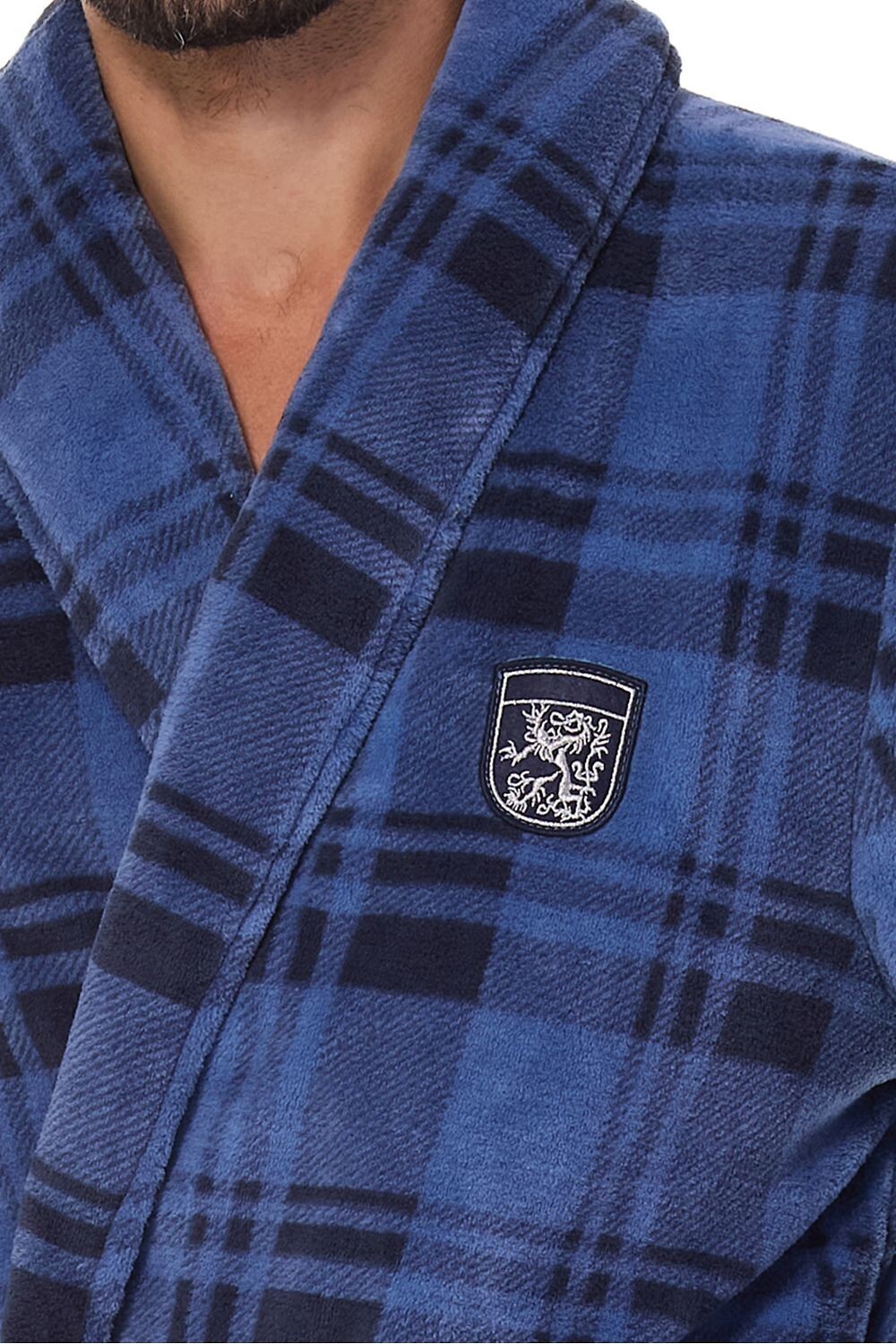 Pánský župan - příjemná a měkká kostkovaná látka - s límečkem - malá aplikace na hrudi - zavazování v pase - pohodlné kapsy po bocích Složení: 100% polyester