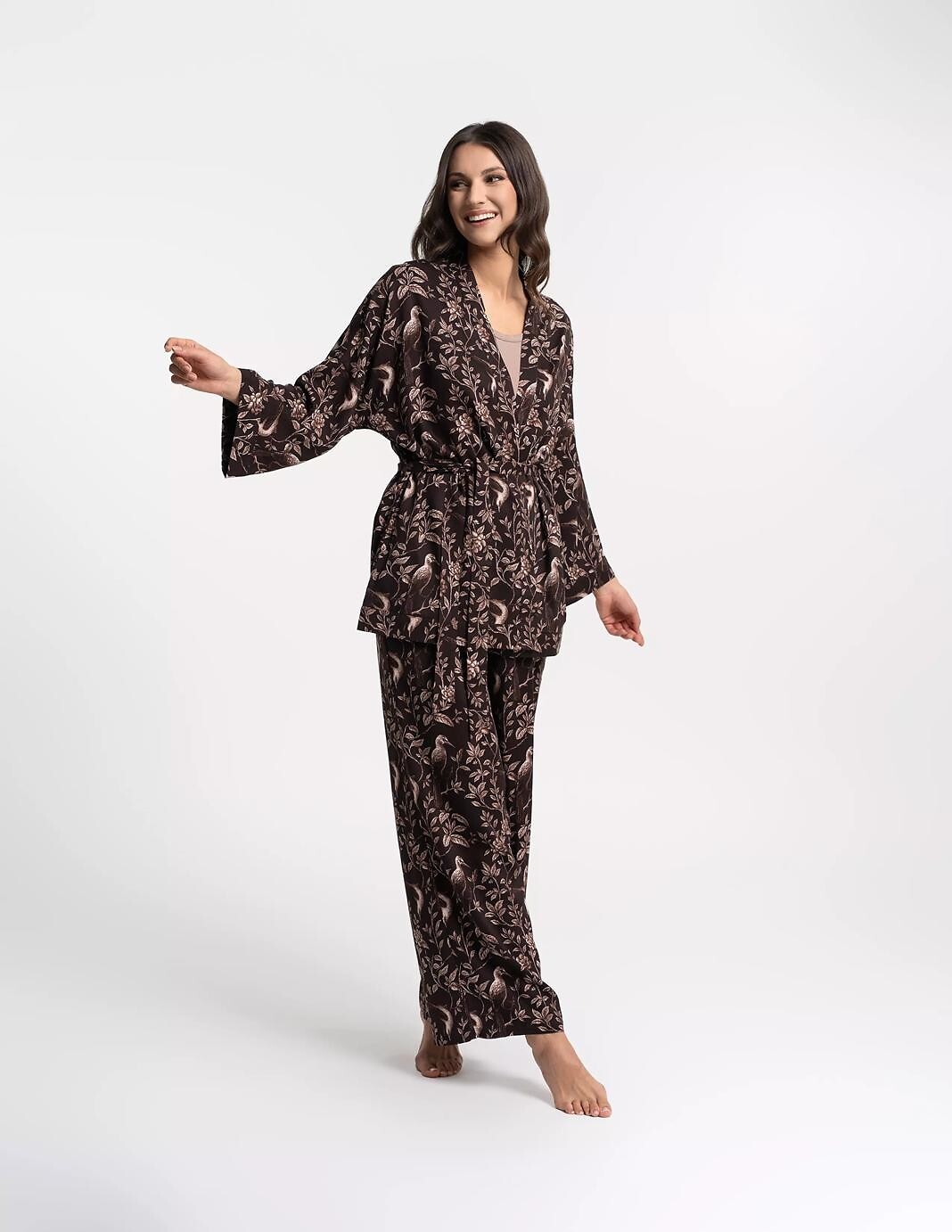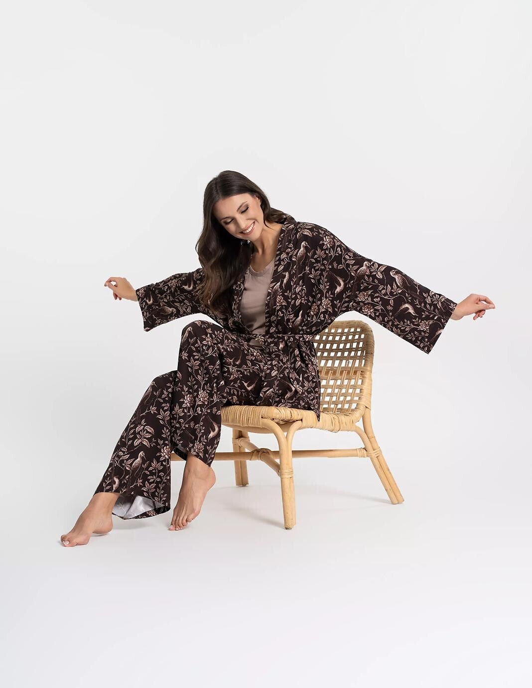 Dámský krátký župan - z příjemné viskózy - květinový potisk - zavazování v pase - pohodlné kapsy po stranách - baleno v plastovém sáčku. Složení: 100% viskóza